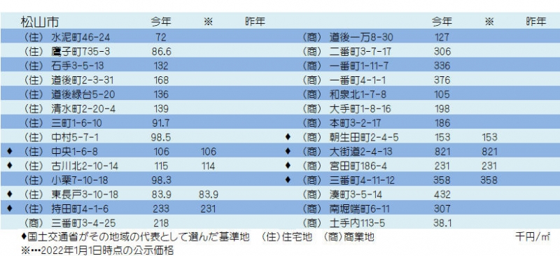 松山市・松前町・伊予市・東温市・砥部町・旧北条の
