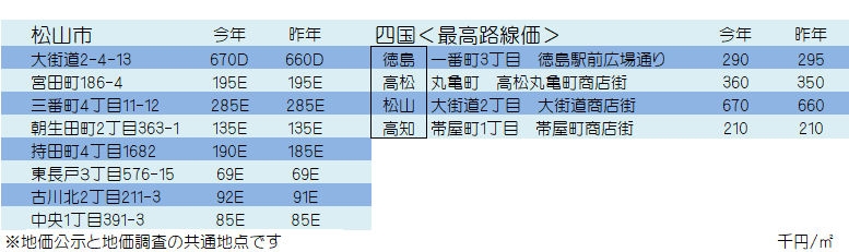 松山市では「e〜よ まちナビ」に載っています。(1円単位で表示しています)