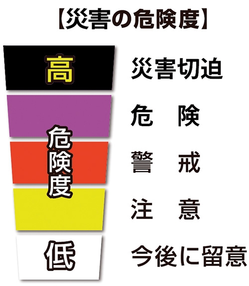 さらに、警報の発表基準をはるかに超える大雨等が予想され、重⼤な災害が起こるおそれが著しく⼤きい場合には、「特別警報」を発表して最大級の警戒を呼びかけます。