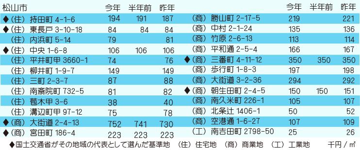松山市の地価公示